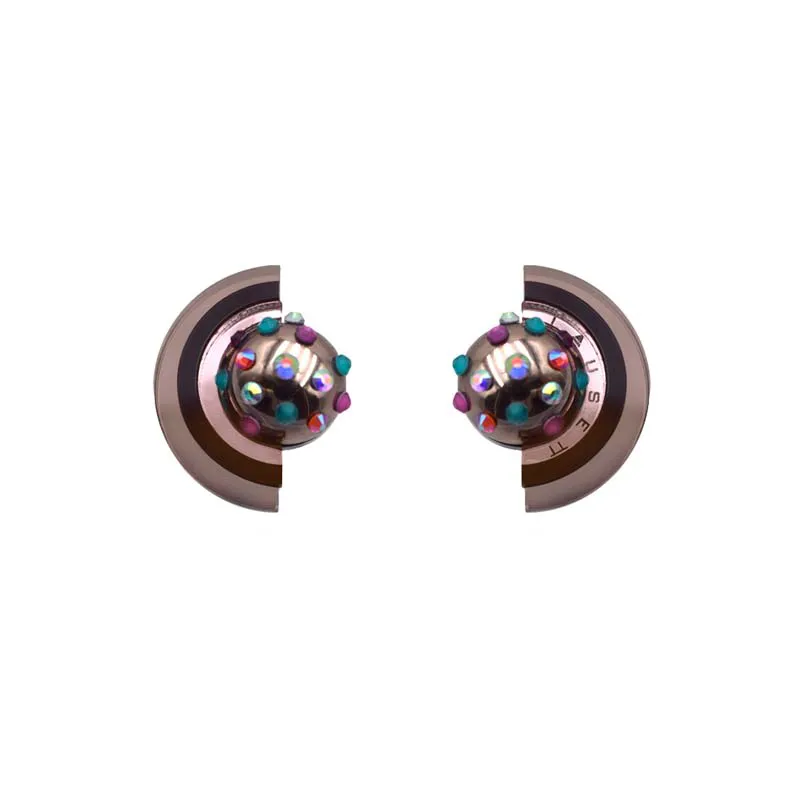 Colores: Bronce, marrón, oro rosa. Piedras en turquesa, iridiscente, rojo y rosa.