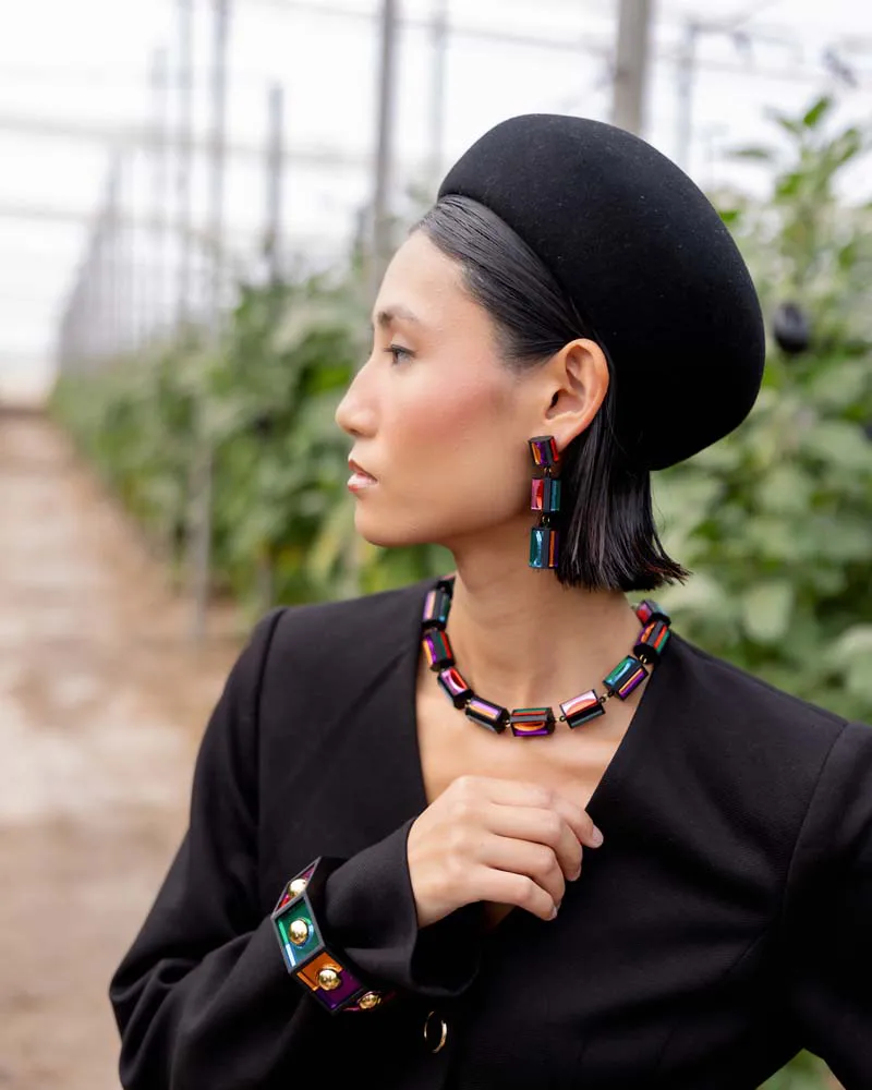 Colores: Verde esmeralda, morado, melocotón, rosa, rojo, celeste y negro.