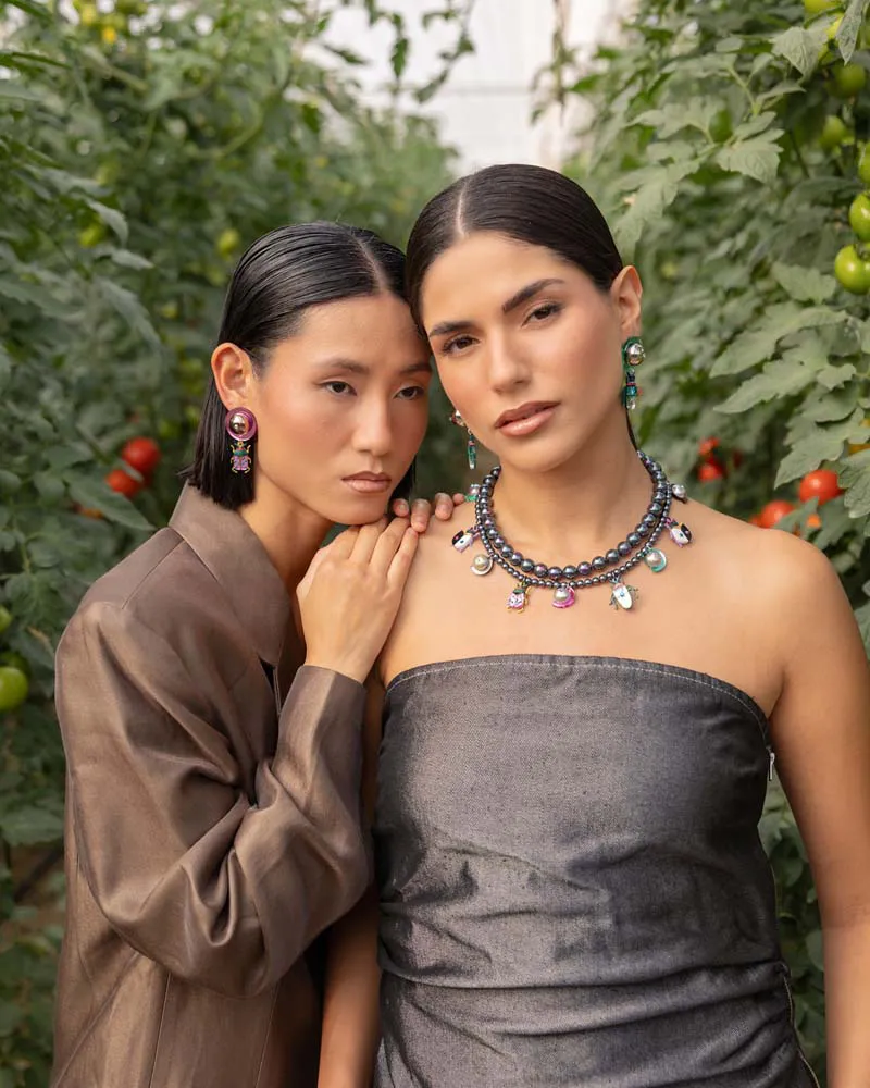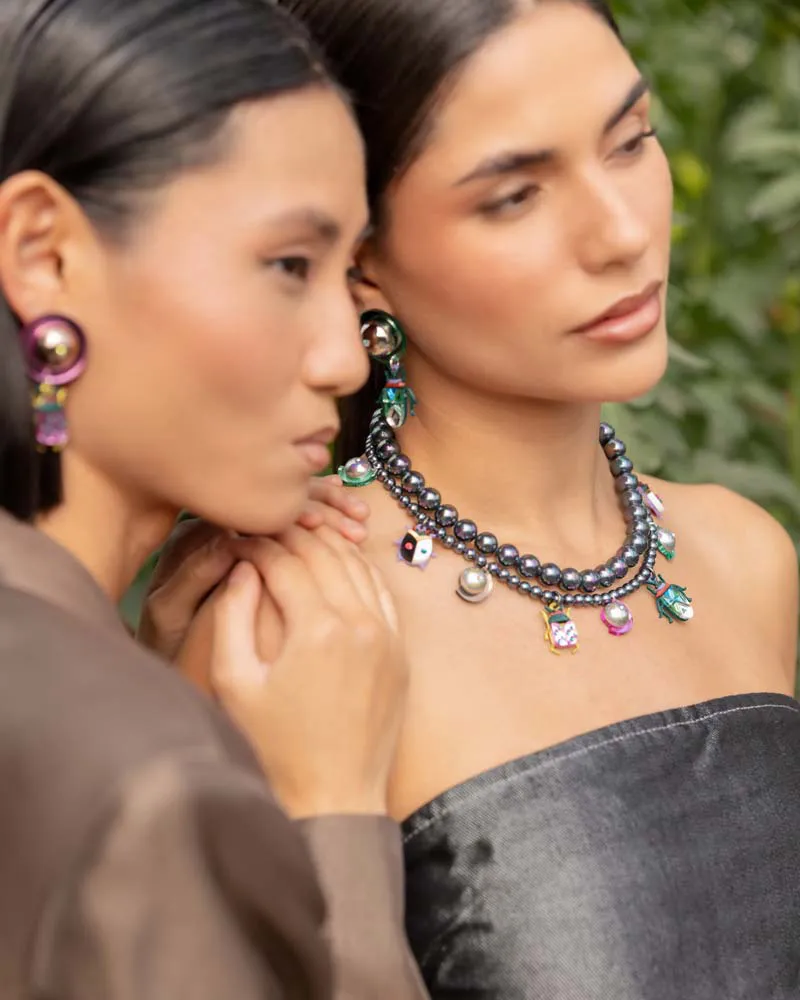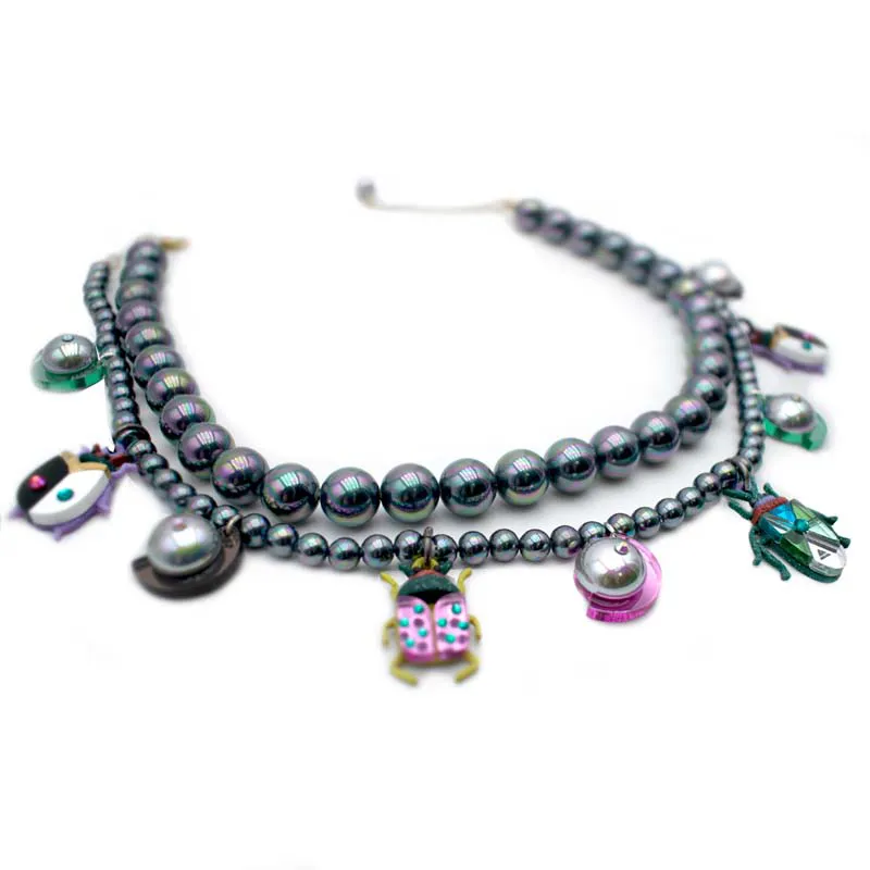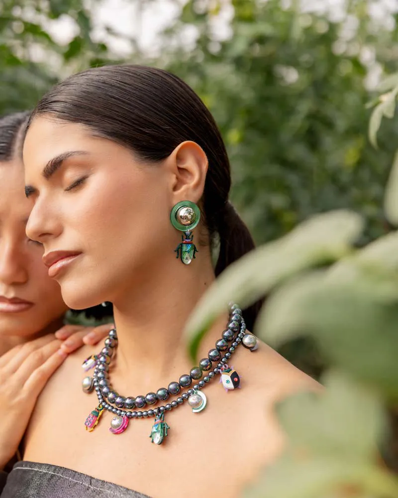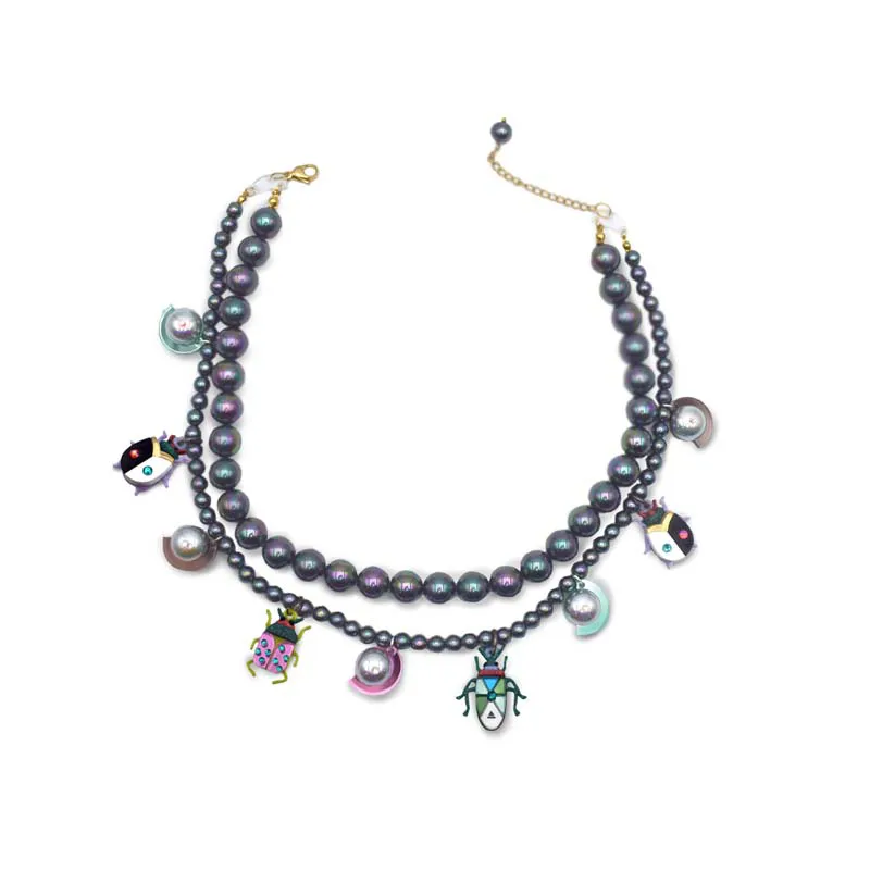 Colores: perlas gris iridiscente, insectos: blanco, negro, lila, granate, verde purpurina, verde gold, rosa, verde manzana, dorado, verde mint, bronce, azul.
