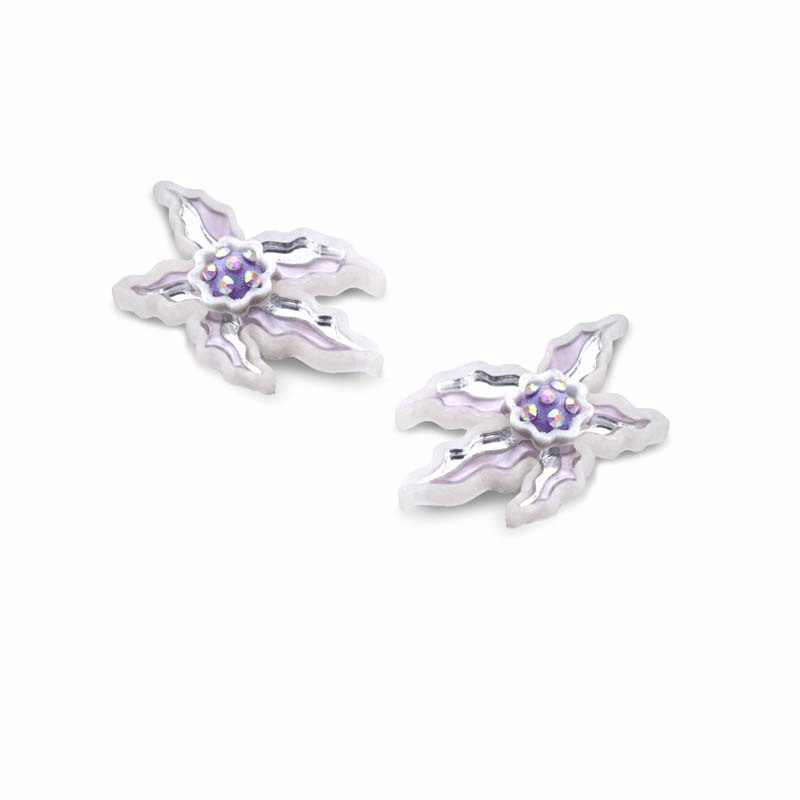 Colores: transparente, blanco perlado, lila perlado, plata espejo. Piedras iridiscentes.