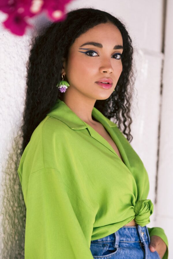 Colores: Verde fluor, blanco y bola de abalorios lila.