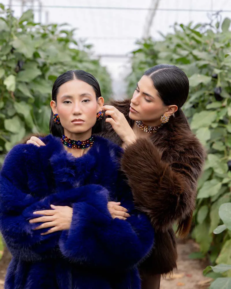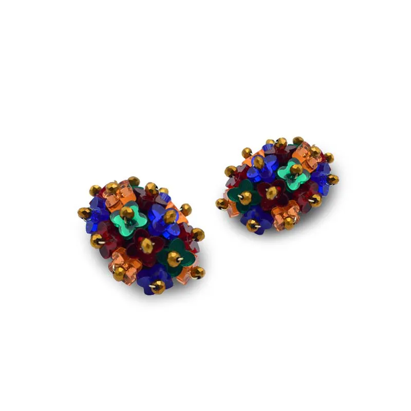 Colores: Granate, azul eléctrico, verde esmeralda y melocotón y bolitas doradas.